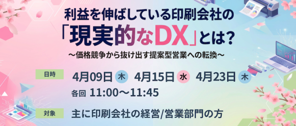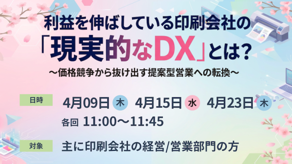 CEO:樋口 清政)は、2026年4月に印刷業界向けに、利益を伸ばしている印刷会社の“現実的なDX”とは?〜価格競争から抜け出す提案型営業への転換〜 と題して、セミナーを開催することをお知らせいたします。