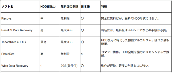 弱点: HDDが「未割り当て」になったり、RAW形式になった重度の障害には対応できないことが多いです。