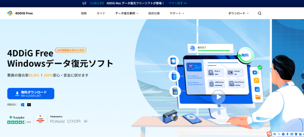 今、HDDユーザーの間で最も評価されているのが「4DDiG Free」です。特に「HDDからデータが消えた」という深刻なトラブルにおいて、他のソフトを凌駕する性能を持っています。