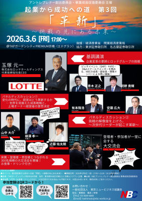 一般社団法人東京ニュービジネス協議会(NBC)は、2026年3月6日(金)、「起業から成功への道 第3回」を開催いたします。