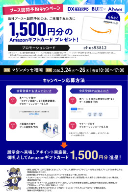 もれなく展示会事務局より「Amazonギフト券 1500円分」が贈呈されます。