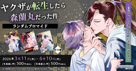 株式会社インクルーズ(東京都渋谷区、代表取締役社長 山﨑 健司)は、3月11日(水)より、日本全国のコンビニエンスストア店内のマルチコピー機を中心に、気軽にプリントできる「インクルーズプリント by eプリントサービス」にて「ヤクザが転生したら森蘭丸だった件~信長め、このオレを小姓にさせる気かよ~」のランダムブロマイド第2弾が販売開始したことをご報告させていただきます。