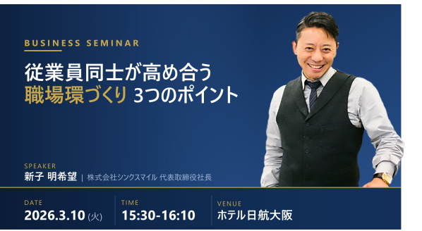 チームワークアプリ「RECOG(レコグ)」を提供する株式会社シンクスマイル本社:東京都港区、代表取締役:新子明希、以下「当社」)は、一般社団法人 全日本ホテル連盟(ANHA)が2026年3月10日に主催する「ANHAホテル産業フォーラム大阪」にて、当社代表取締役社長 新子明希が講演を行うことをお知らせいたします。