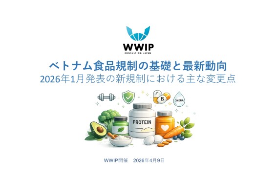 株式会社ワールドワイド・アイピー・コンサルティングジャパン (以下「WWIP」) は、2026年4月9日(木)14:00〜16:00に、「ベトナム食品規制の基礎と最新動向:2026年1月発表の新規制における主な変更点」を開催いたします。