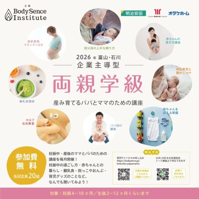 一般社団法人ボディセンス・インスティテュート(本拠地:富山県富山市、代表理事:高橋由紀)は、産後うつや孤立育児の防止を目的とした「企業主導型両親学級」を、2026年3月より富山県、石川県、大阪府の3府県にて順次開催することを決定いたしました。