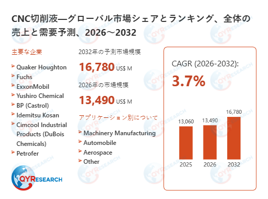 QYResearch株式会社(所在地:東京都中央区)は、「CNC切削液―グローバル市場シェアとランキング、全体の売上と需要予測、2026~2032」の最新調査レポートを発表しました。