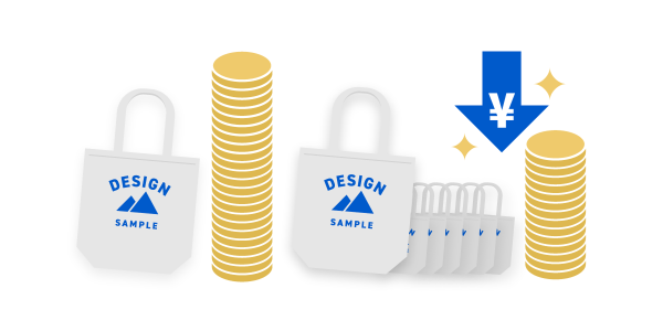同一商品・同一デザインでのご注文が対象となり、イベント物販やプロモーション用ノベルティといったまとまった数量のご注文が、これまで以上にお手頃な価格で制作いただけます。