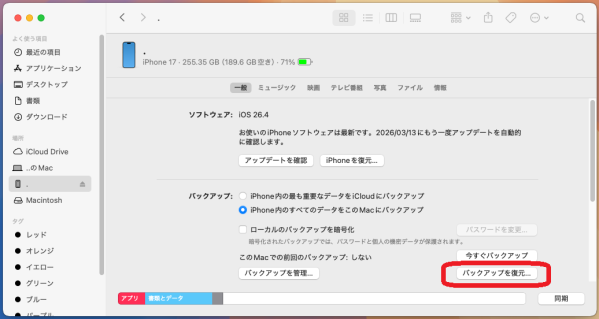 方法2:iTunes / Finderのバックアップから復元する