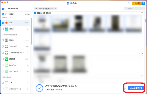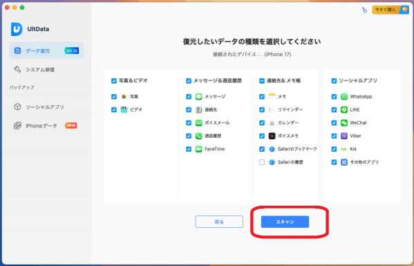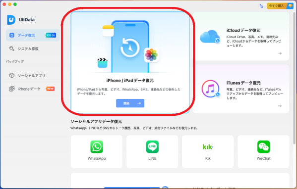 UltData for iOS:バックアップ不要、選択復元、プレビューあり