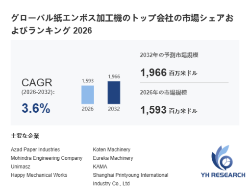 本記事は、YH Researchが発行したレポート「グローバル紙エンボス加工機のトップ会社の市場シェアおよびランキング 2026」 を紹介しています。