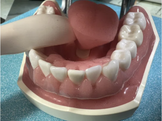器具を使って舌を押し上げます。注意:痛いほどはしないでください!