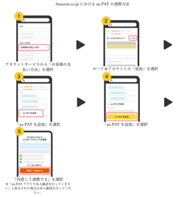 Amazon.co.jpの支払い方法に「au PAY(ネット支払い)」を追加するためには、Amazon.co.jpでの連携が必要です。