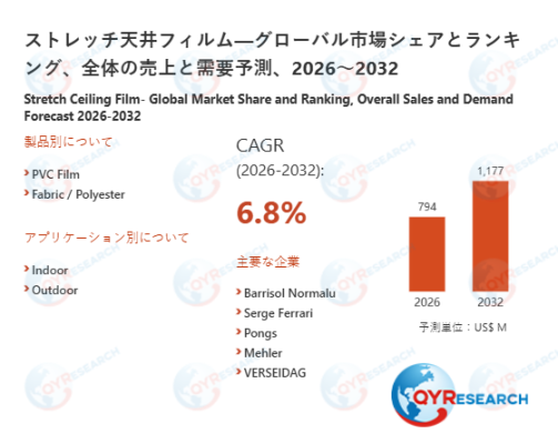 QYResearch株式会社(所在地:東京都中央区)は、「ストレッチ天井フィルム―グローバル市場シェアとランキング、全体の売上と需要予測、2026~2032」の最新調査レポートを発表しました。
