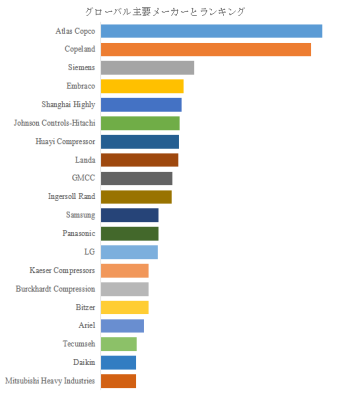 LP Informationのトップ企業研究センターによると、コンプレッサーの世界的な主要製造業者には、Atlas Copco、Copeland、Siemens、Embraco、Shanghai Highly、Johnson Controls-Hitachi、Landa、Huayi Compressor、GMCC、Ingersoll Randなどが含まれている。2025年、世界のトップ10企業は売上の観点から約33.0%の市場シェアを持っていた。ここから読み取れるのは、用途別に勝ち筋が分かれ、それが地域の産業構造と連動している点である。北米・欧州は産業用圧縮の比重が高く、エネルギー効率保証、サービス収益、M&Aによるポートフォリオ拡張が成長手段となりやすい。Atlas CopcoやIngersoll Rand、Kaeser、Burckhardt、Arielなどは、信頼性とアフター市場で収益を積み上げるモデルに親和的である。アジアは家電・空調の量産と部材サプライチェーンが厚く、スクロールやロータリーの高効率化、静音化、冷媒転換を、設計から生産まで高速に回す力が競争力となる。GMCC、Shanghai Highly、Huayi、Samsung、Panasonic、LG、Daikin、三菱重工などは、完成品メーカーやOEM需要との結節点を強みにしやすい。結果として、グローバル競争は単一製品の性能比較から、地域別の規制・用途・保全体制に合わせたソリューション設計へ移行し、技術と商流を束ねる企業が主導権を握る。