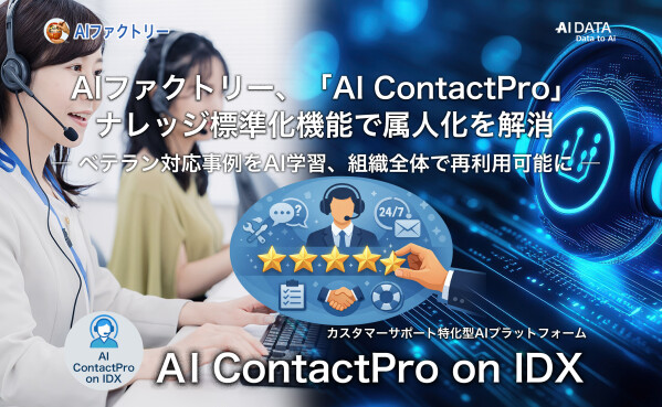 企業データとAIの利活用カンパニー、AIデータ株式会社(本社:東京都港区、代表取締役社長 佐々木隆仁、以下AIデータ社)は、「AI ContactPro on IDX」のナレッジ標準化機能により、属人化していた顧客対応ノウハウを組織資産として蓄積・活用。ベテランオペレーターの対応事例をAIが学習し、誰でも再利用可能な形で標準化します。