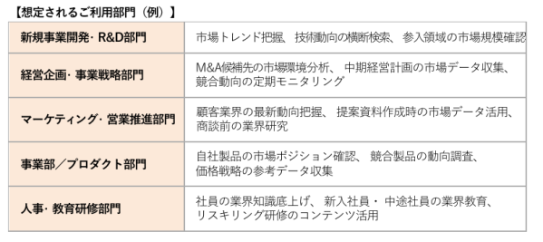 市場規模、競争環境、規制、技術、収益モデルなど、意思決定に必要な論点を業界横断的な切り口で分析し、「点の情報」を「線」に繋いで独自の洞察(インサイト)獲得を支援します。