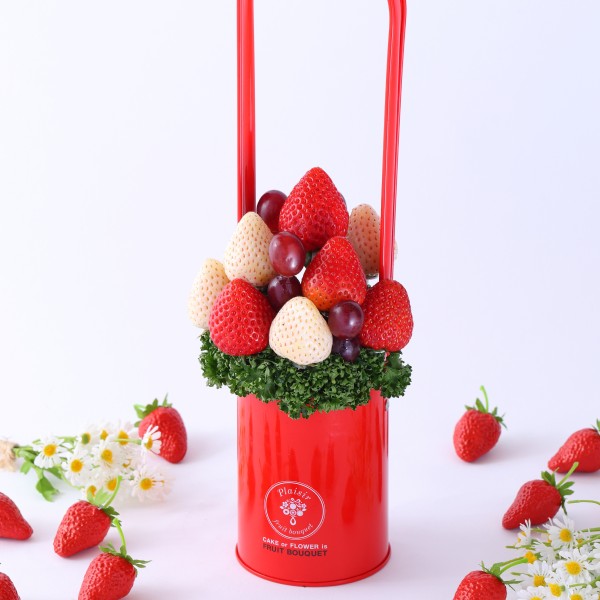 本商品は、いちごやオレンジ、パイナップルなどのフレッシュフルーツを使用し、花束のようにアレンジメントしたギフトです。