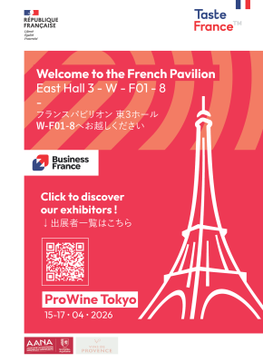 4月15日(水)~17日(金)フランス貿易投資庁-ビジネスフランスは 第3回を迎える ProWine Tokyo 2026(東京国際ワイン・アルコール飲料展 https://prowine-tokyo.com/ )にフランスパビリオンを出展し 22社の来日をサポートします(東3ホール W-F01-8)。テイスティングエリアを設け、品質を維持しつつも環境への配慮を重んじるフランス製品を紹介し、新たなビジネスパートナーシップ構築に向け、日本のインポーターやバイヤーとの交流を図ります。