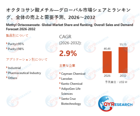 2026年3月19日、QYResearch株式会社(所在地:東京都中央区)は、「オクタコサン酸メチル―グローバル市場シェアとランキング、全体の売上と需要予測、2026~2032」に関する最新の調査レポートを発表しました。
