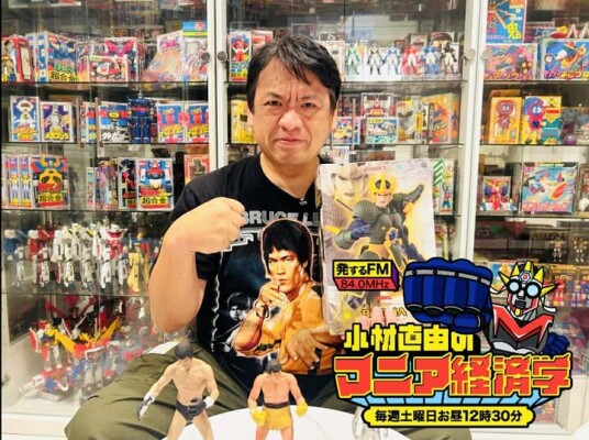 パワー系アクション俳優の大東賢が、おもちゃ鑑定士として知られる小材直由氏のラジオ番組『小材直由のマニア経済学』に出演の放送案内です。