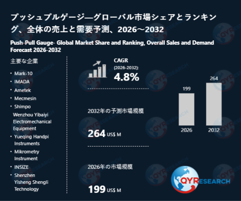 QYResearch株式会社(所在地:東京都中央区)は、「プッシュプルゲージ―グローバル市場シェアとランキング、全体の売上と需要予測、2026~2032」の最新調査レポートを発表しました。