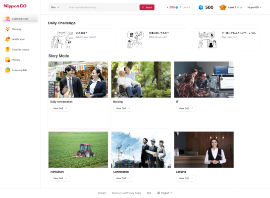 これから日本語学習を検討している方も、まずは気軽に触れて、操作感をお試しいただけます。
