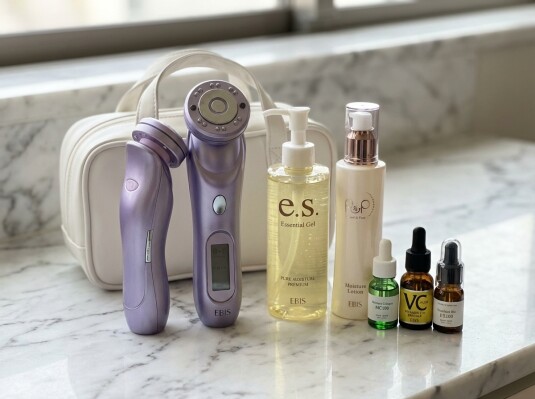 コットンを挟んで毛穴の奥の汚れを浮かせるクレンジングから始まり、美容成分を肌の奥へと届ける導入ケア、そして高周波で温めながら引き締める。