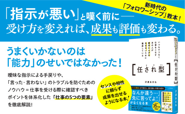 ■『いつもそつなく仕事をこなすあの人が絶対にムダを生まないために徹底している任され型 「5つの要素」を可視化し、抜け漏れ・手戻りを防ぐ』著者沢渡あまね