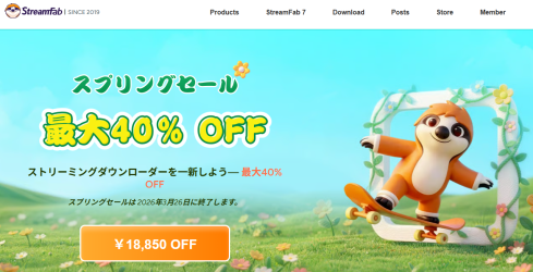 世界最高峰の動画ダウンロードソリューションを提供するStreamFab(ストリームファブ)は、現在開催中の「春の特大セール」が2026年3月26日に終了することをお知らせいたします。人気製品が最大40%OFF(60%価格)となるこのキャンペーンは、新生活に向けた動画ライフのアップグレードに最適な機会です。