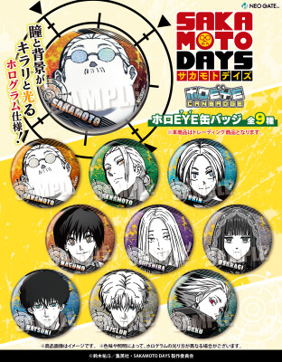 TVアニメ『SAKAMOTO DAYS』より、等身イラストを使用した【ホロEYE缶バッジ(全9種/トレーディング)】の発売が決定いたしました!