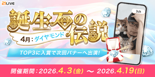 株式会社エムアンドティーティー(本社:沖縄県北谷町、代表取締役:井藤 三知子)が運営するエンターテイメント・ライブ配信アプリ【21LIVE(ニーイチライブ)】URL: https://21.live では、4月3日(金)より『誕生石の伝説』を開催します。
