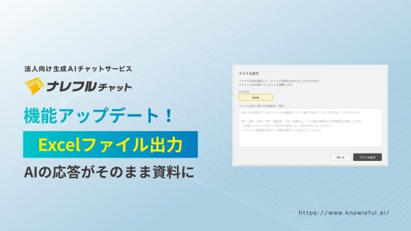 AIサービスやシステム開発を手掛けるCLINKS株式会社(本社:東京都中央区、代表取締役:河原浩介)が提供する法人向け生成AIチャットサービス「ナレフルチャット」は、2026年3月26日(木)、新機能「Excelファイル出力機能」をリリースしました。本機能により、AIとの対話内容を「出力したいデータの内容」や「ファイルの行列構成」を自然言語で指示しつつ、そのまま実務で使えるExcelファイルに変換・出力することが可能になります。