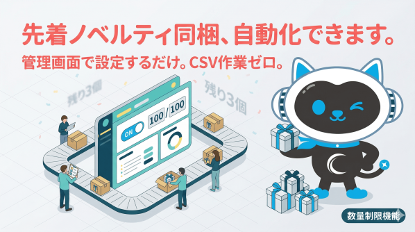 EC運営をしていると、販促施策として「先着○名にノベルティを同梱」というキャンペーンをやりたくなる場面、けっこうあると思います。