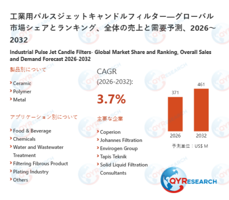 QY Research株式会社(東京都中央区)は、「工業用パルスジェットキャンドルフィルター―グローバル市場シェアとランキング、全体の売上と需要予測、2026~2032」の最新レポートを発表しました。