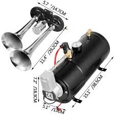 エアホーンとコンプレッサーシステムとは、圧縮空気を利用して大音量の警報音や注意喚起音を発生させる装置であり、主にトラック、バス、鉄道車両、船舶、産業設備などで使用されます。一般にエアホーン本体、エアコンプレッサー、エアタンク、電磁弁、配管および制御スイッチで構成され、コンプレッサーが圧縮した空気をタンクに蓄圧し、操作時に電磁弁を介してエアホーンへ供給することで共鳴音を発生させます。エアホーンとコンプレッサーシステムは電気式ホーンに比べて高音圧・長距離伝達が可能であり、視界不良環境や騒音の大きい現場でも高い警告効果を発揮する点が特徴です。また、圧力制御や多連ホーン構成により音色調整も可能であり、安全性向上用途として重要な役割を担います。