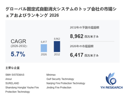 本記事は、YH Researchが発行したレポート「グローバル固定式自動消火システムのトップ会社の市場シェアおよびランキング 2026」 を紹介しています。