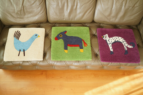 「おうちの時間をゆったりと、ここちよく。」そんな想いから生まれた terrier de sautillé(テリエ ド ソティエ)。詩や童話の世界のような一枚の絵から描き出されるラグは、あたたかな色合いと柔らかなデザインが魅力です。目にするとホッとしたり、見ているだけでワクワクしたり。ネパールの職人が羊毛を紡ぎ、丁寧に手織りしたウール100%のラグは、夏はさらり、冬は暖かく一年中快適です。手仕事の色の揺らぎや、ふかふかな弾力をぜひ店頭でお確かめください。