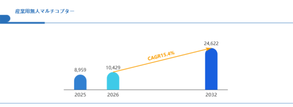 Global reports調査チームの最新レポート「グローバル産業用無人マルチコプター市場規模、主要企業シェア、ランキング分析レポート【2026年版】」によると、グローバル産業用無人マルチコプター市場は2025年の8959百万米ドルから2032年には24622百万米ドルに成長し、2026年の市場規模は約10429百万米ドルと推計されており、2026-2032年のCAGR(年間成長率)が15.4%に達すると予測されている。
