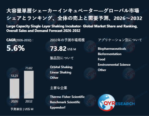 QY Research株式会社(東京都中央区)は、「大容量単層シェーカーインキュベーター―グローバル市場シェアとランキング、全体の売上と需要予測、2026~2032」の最新レポートを発表しました。
