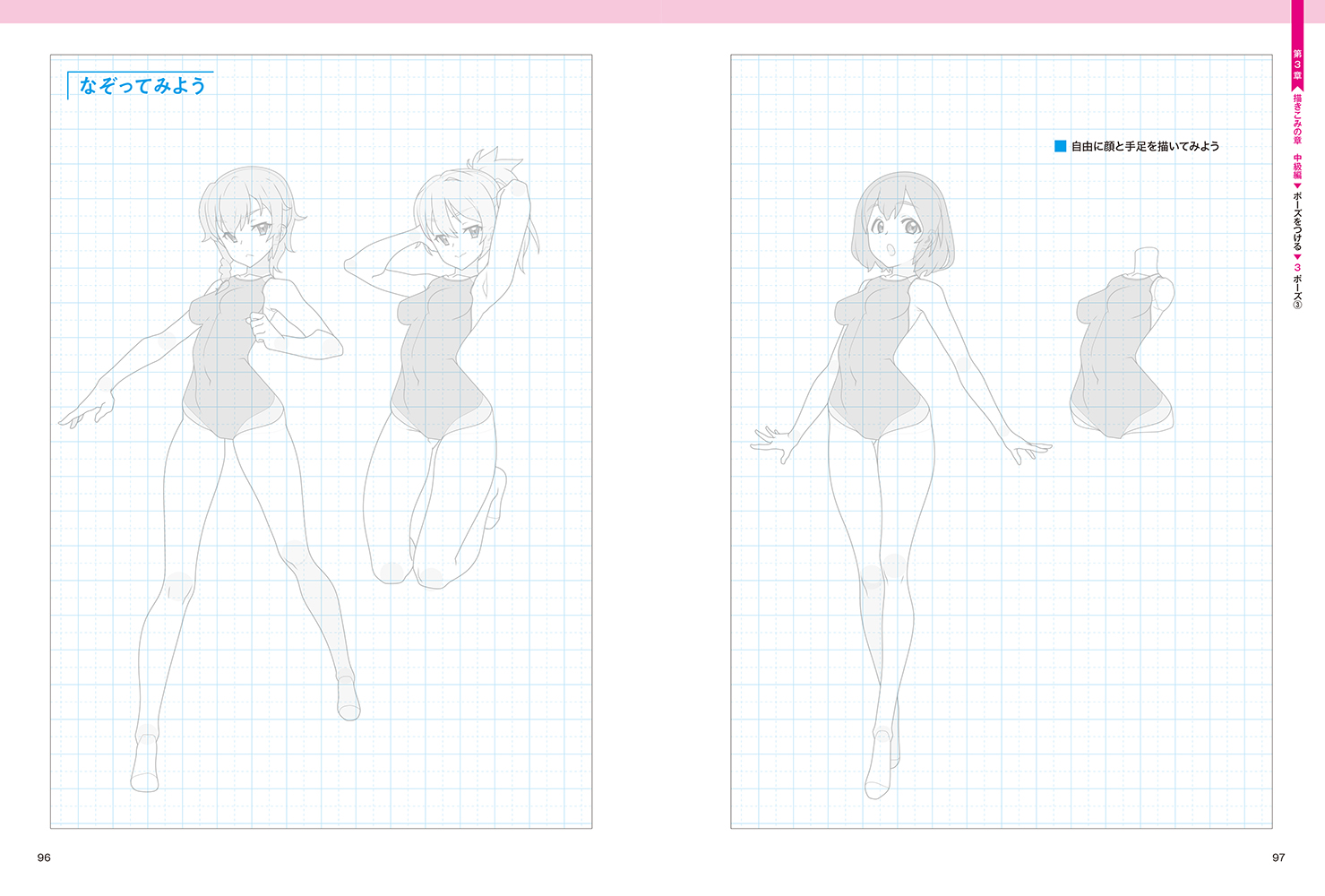 本書は「なぞり描き」で実際に描きこみながら、かわいい女の子が描けるようになっていく技法書です。