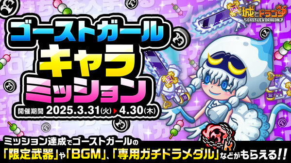 株式会社アソビズム(本社:東京都千代田区、代表取締役:大手智之)は、App Store・Google Playにて好評配信中の『城とドラゴン』で、新キャラ“ゴーストガール”が3月31日(火)19:00よりゲーム内に登場することをお知らせいたします。