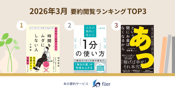 累計会員数130万人を突破した本の要約サービス「flier(フライヤー)」を運営する株式会社フライヤー(本社:東京都千代田区、代表取締役CEO 大賀康史)は、2026年3月のビジネス書月間ランキングを発表しました。