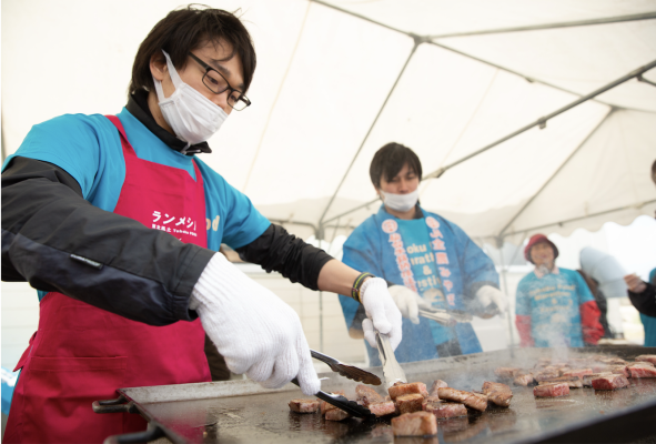 当日、同時開催される登米フードフェスティバルと東北日本酒フェスティバルを含む総来場者数は約4万人を見込んでいます。本大会の目玉である2kmごとに設置されたエイドステーション(給水所)で提供されるランナーのための補給食は計24品目!東北6県から自慢のグルメを提供します。