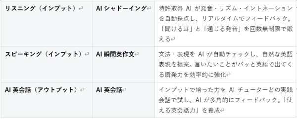 主要機能:AIシャドーイング採点 / AI瞬間英作文 / AI英会話「SUPITORA」