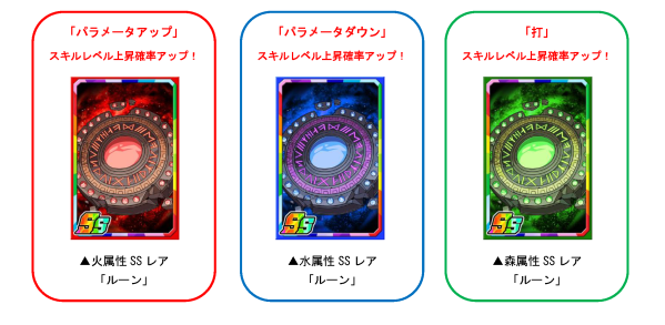 「魔術P」を使い素材ガチャを回すと、限定の強化素材「ルーン」を手に入れることができます。一部のモンスターに使うと強化値2倍の効果があるほか、パラメータアップ・パラメータダウン・打のスキルレベル上昇確率もアップします。
