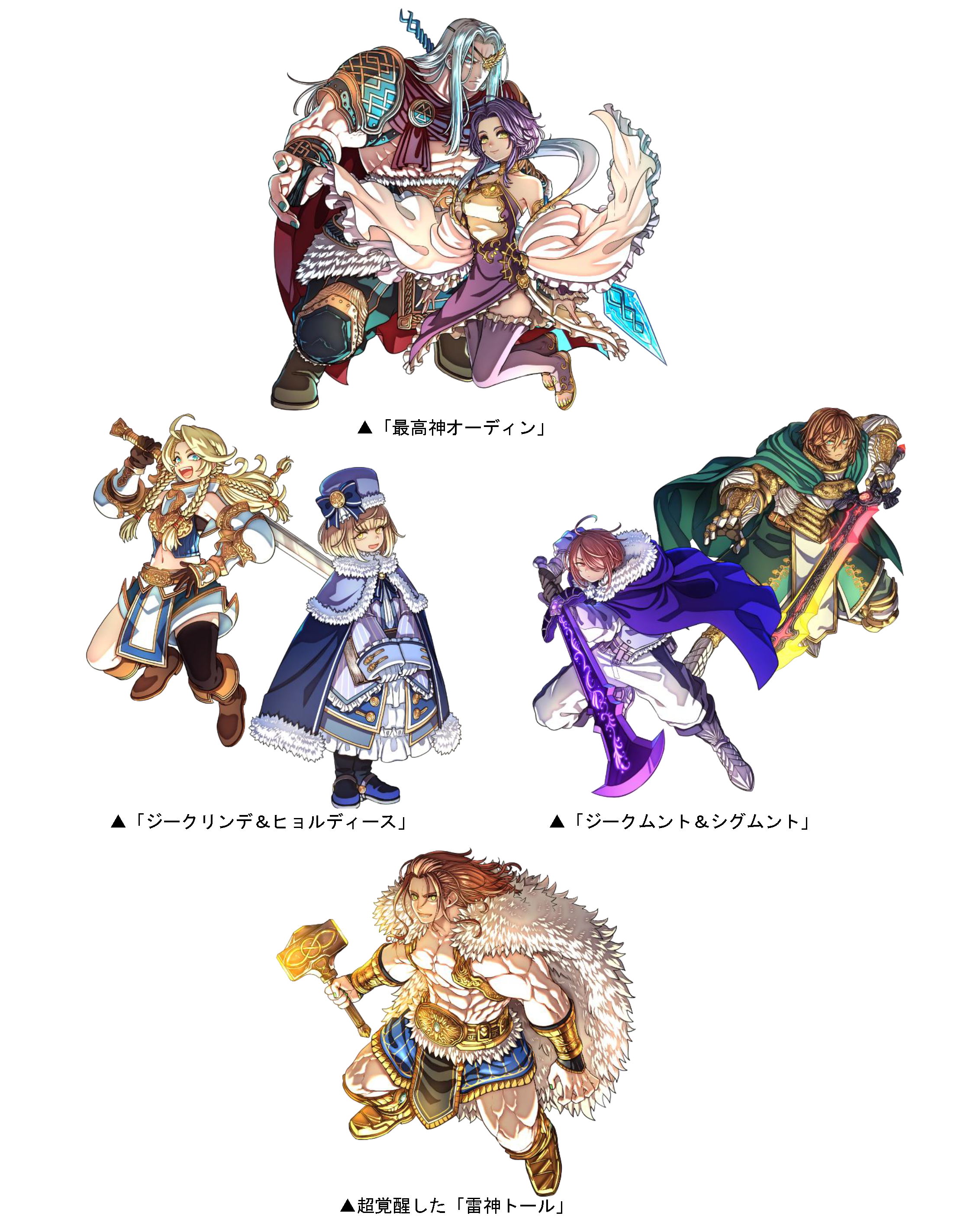 本ダンジョンには、新たに「最高神オーディン」「ジークリンデ&ヒョルディース」「ジークムント&シグムント」、超覚醒した「雷神トール」が登場!また、クリアした回数に応じて竜石を手に入れることができます。