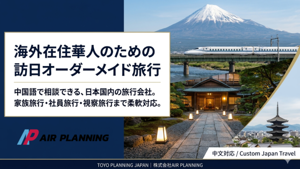 株式会社AIR PLANNING(本社:東京都千代田区平河町1-3-6 BIZMARKS麹町2F)は、これまで主に台湾在住のお客様向けに展開してきた訪日旅行サービス「東洋企画」のノウハウを活かし、今後は欧米・アジア・オセアニアなど世界各国に在住する華人に向けた「訪日オーダーメイド旅行」サービスの情報発信および受注体制を強化いたします。