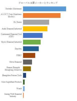 LP Informationのトップ企業研究センターによると、世界の主要製造業者には、Noritake(森村)、A.L.M.T. Corp(住友電工)、Dr. Kaiser、Asahi Diamond Industrial、Continental Diamond Tool(CDT)、Kyoto Diamond Industrial、JTEKT、Diprotex、Ehwa Diamond、Hainan Zhongshi Zhongbang Abrasivesが含まれる。売上ベースで上位企業への集中が進んでおり、2025年時点でトップ5が約57.0%、トップ10が約77.0%を占める構図である。これは、単なる生産規模の優位ではなく、砥粒保持技術、幾何精度の作り込み、用途別のノウハウ蓄積、顧客工程への適合設計といった複合要素が競争力を規定していることを示唆する。競争の焦点は価格だけでなく、顧客が求める砥石状態を狙い通りに再現する“工程再現性”の提供能力、ならびに長期供給・品質保証・技術サポートを含む総合力へ移行しやすい。結果として、主要企業はプロダクト単体ではなく、用途別提案力と供給信頼性を梃子に、シェアを固める戦略を取りやすい市場構造となっている。