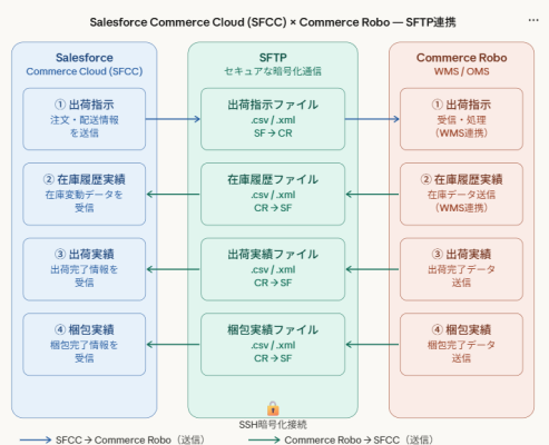 SFCCは柔軟性が高い反面、外部システム連携においてはWMS側にも高度なカスタマイズが求められます。