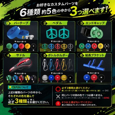 アンケートにご協力いただいた10名様には、以下の6種類のパーツからそれぞれ3種類とお好みのカラーをお選びいただけます。